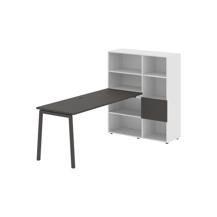 Столешница глубиной 670 мм, комплектуется регулируемой опорой L-образной формы из профиля трубы 40х40, комплектом телескопических траверс и двумя кронштейнами для крепления к стеллажу.