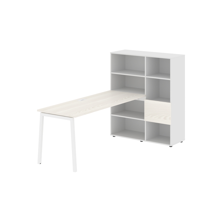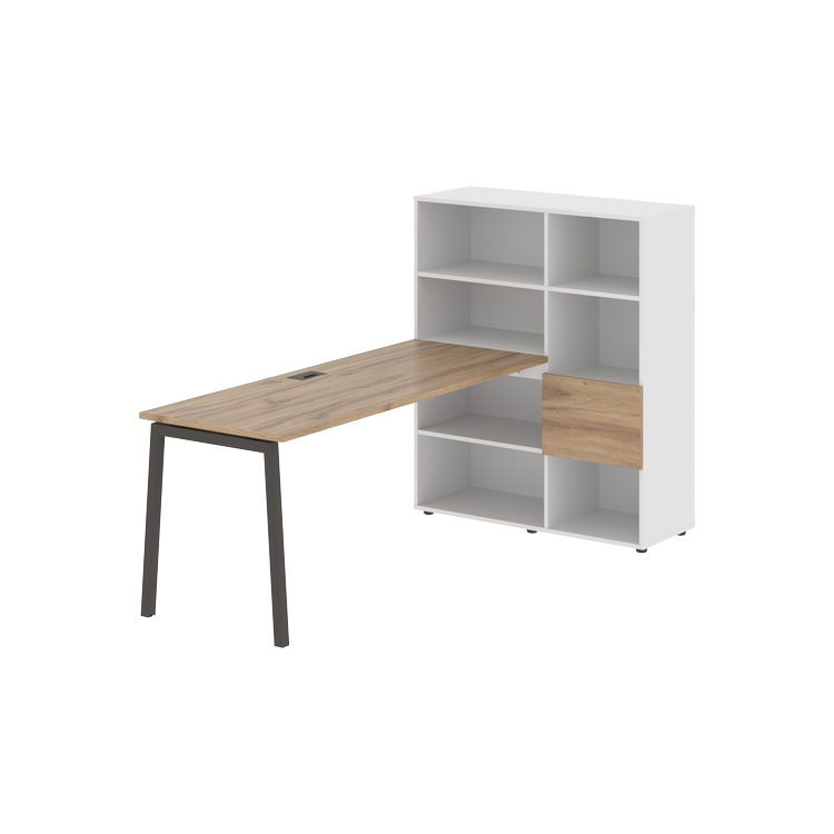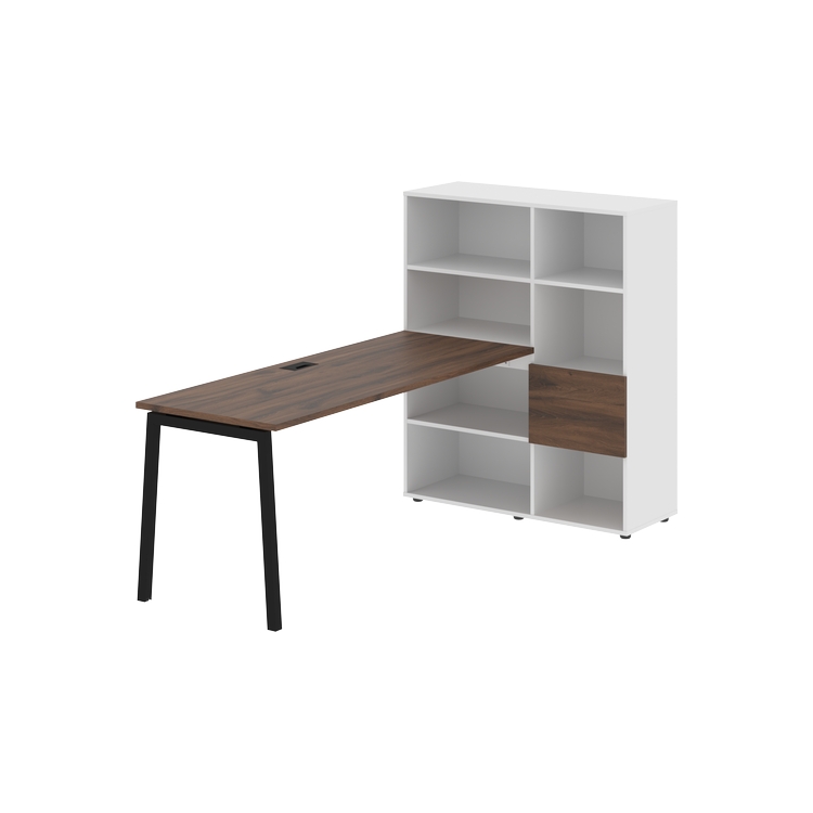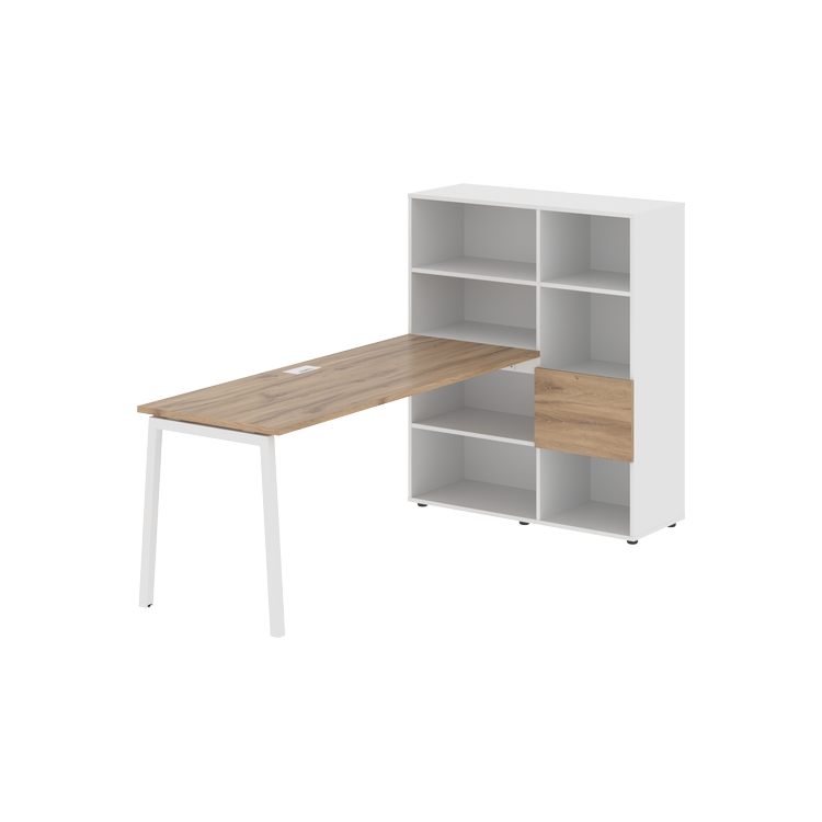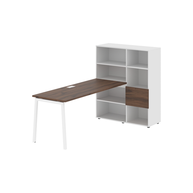 Каркасы стеллажей полностью из ЛДСП т.18 мм с кромками ПВХ т.2 и 0,45 мм, задняя стенка из ЛДСП. Комплектуется малой дверью в цвет столешницы и регулируемыми опорами h= 27 мм.