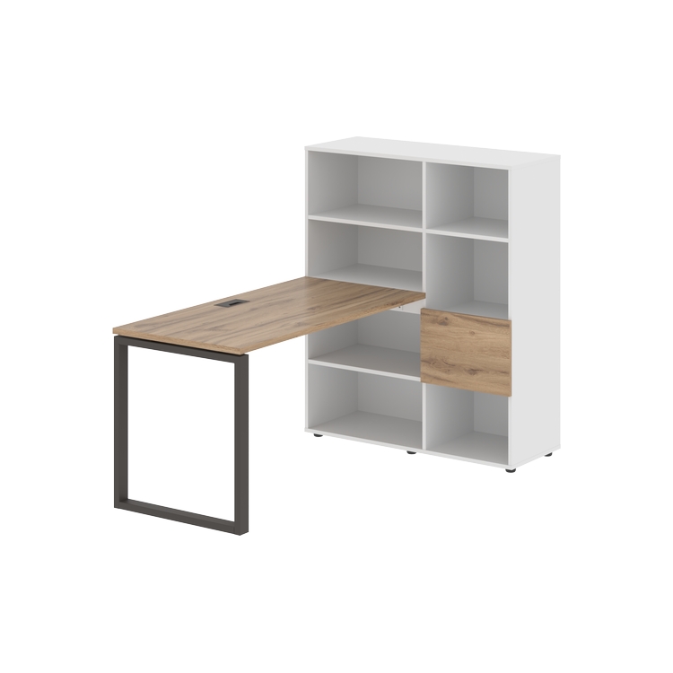 Каркасы стеллажей полностью из ЛДСП т.18 мм с кромками ПВХ т.2 и 0,45 мм, задняя стенка из ЛДСП. Комплектуется малой дверью в цвет столешницы и регулируемыми опорами h= 27 мм.
