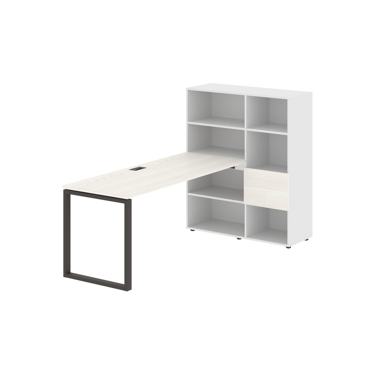 Каркасы стеллажей полностью из ЛДСП т.18 мм с кромками ПВХ т.2 и 0,45 мм, задняя стенка из ЛДСП. Комплектуется малой дверью в цвет столешницы и регулируемыми опорами h= 27 мм.
