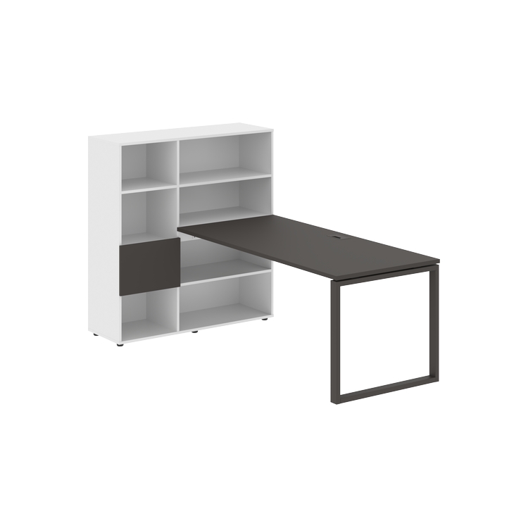 Каркасы стеллажей полностью из ЛДСП т.18 мм с кромками ПВХ т.2 и 0,45 мм, задняя стенка из ЛДСП. Комплектуется малой дверью в цвет столешницы и регулируемыми опорами h= 27 мм.