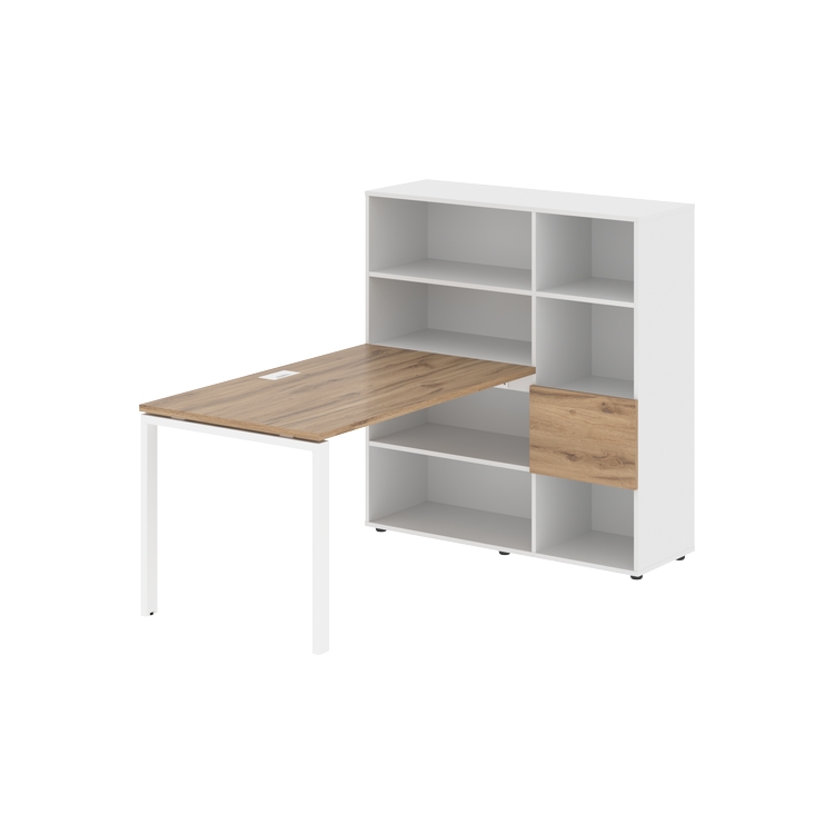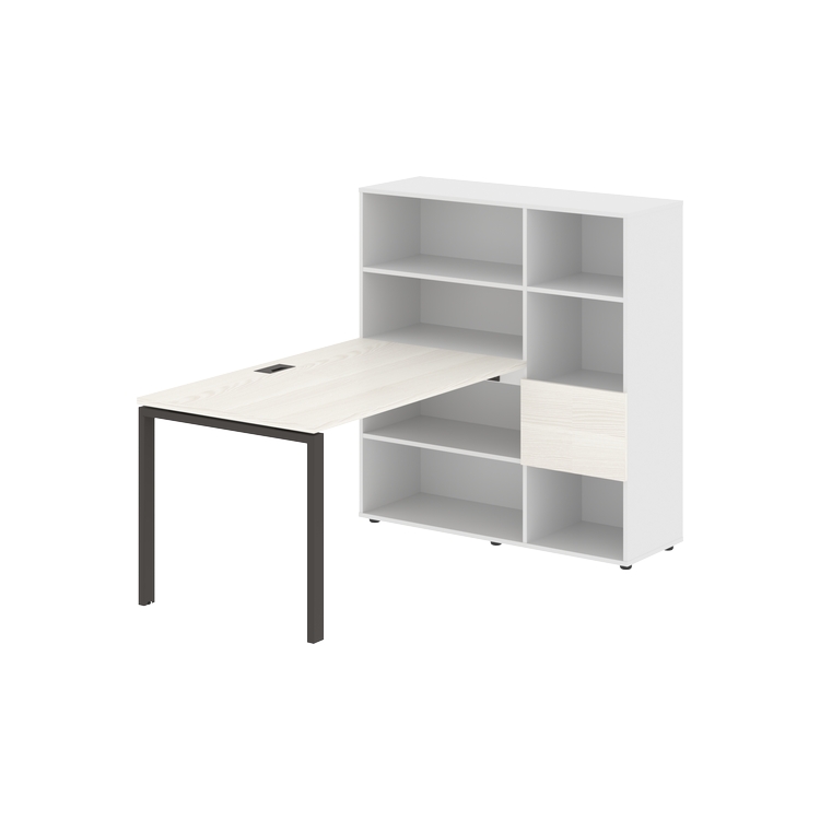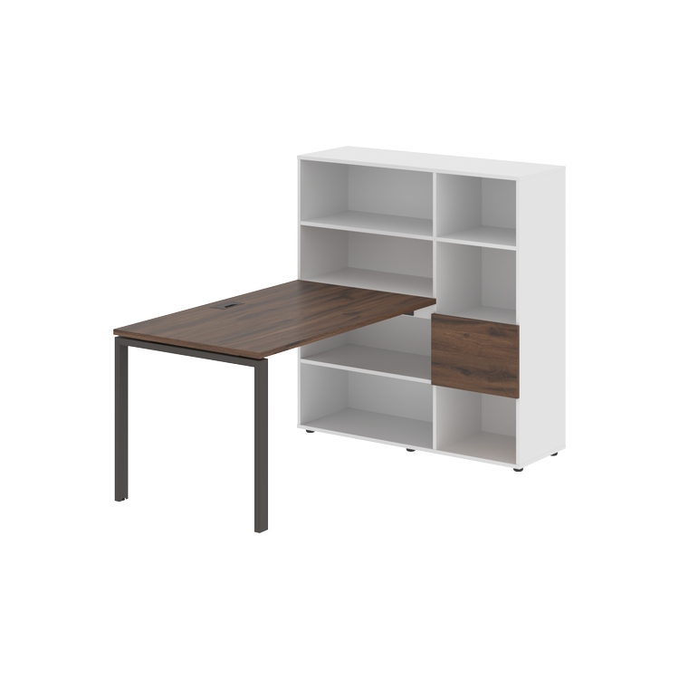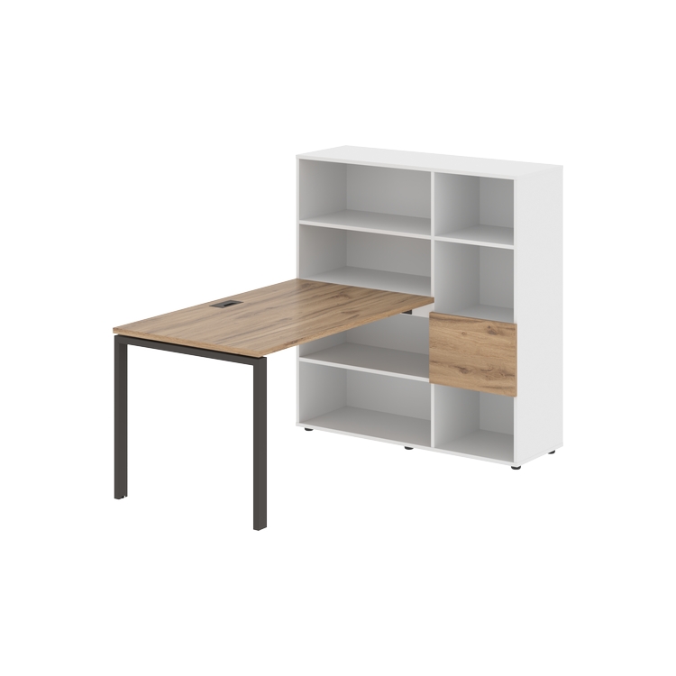Столешница глубиной 800 мм, комплектуется регулируемой опорой П-образной формы из профиля трубы 60х30, комплектом телескопических траверс и двумя кронштейнами для крепления к стеллажу.