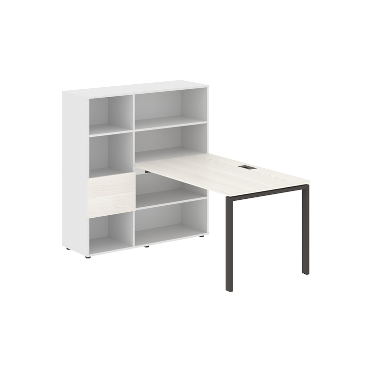 Столешница глубиной 800 мм, комплектуется регулируемой опорой П-образной формы из профиля трубы 60х30, комплектом телескопических траверс и двумя кронштейнами для крепления к стеллажу.