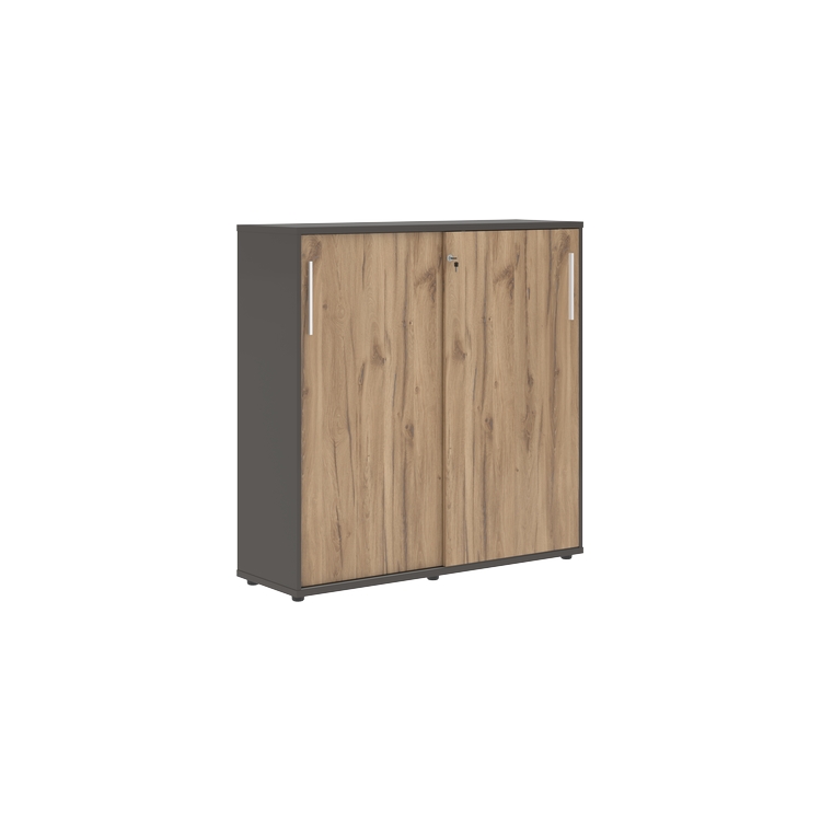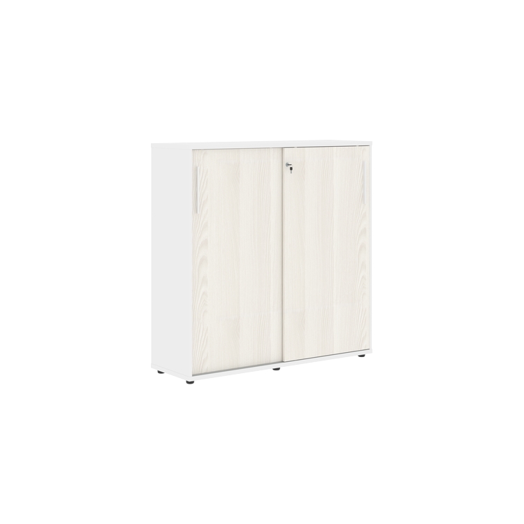 Шкаф комплектуется центральным замком для одновременного закрывания двух дверей, регулируемыми опорами h=27 мм и металлическими ручками.