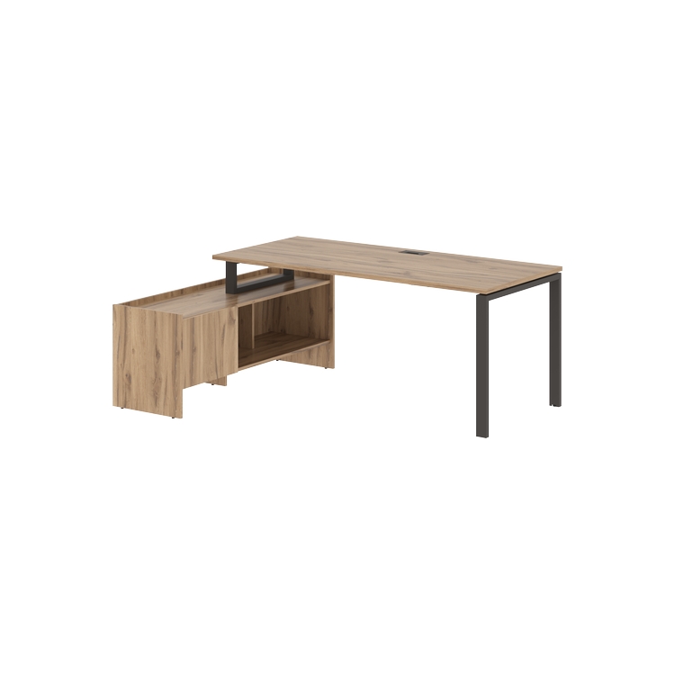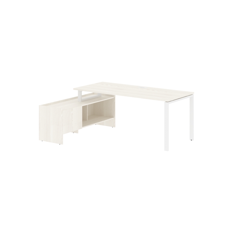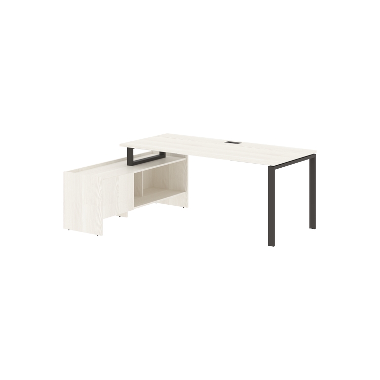 Столешница глубиной 800 мм из ЛДСП т.25 мм с кромками ПВХ по периметру т.2 мм. Комплектуется металлическим кабель-каналом габаритом 160х80х25 мм.