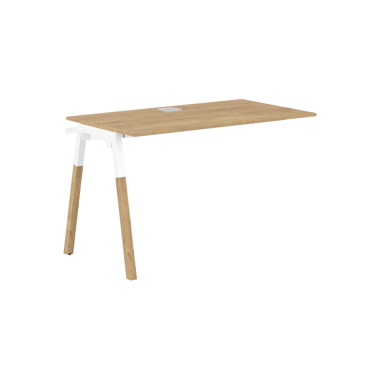 Столешница ЛДСП т.18мм. c кромкой ABS т.2.мм, комплектуется квадратной заглушкой кабель-канала по центру, 2-мя траверсами и промежуточной комбинированной опорой А-образной формы, верхняя часть из профиля трубы 40х40мм и нижняя часть из материала – бук; отделка – масло-воск.