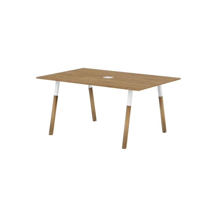 Столешница прямоугольная из ЛДСП т.18 мм. c кромкой ABS т.2 мм, комплектуется квадратной заглушкой кабель-канала в центре, 2-мя траверсами и комбинированными опорами А-образной формы, верхняя часть из трубы 40х40 мм и нижняя часть из массива бука; отделка – масло-воск.