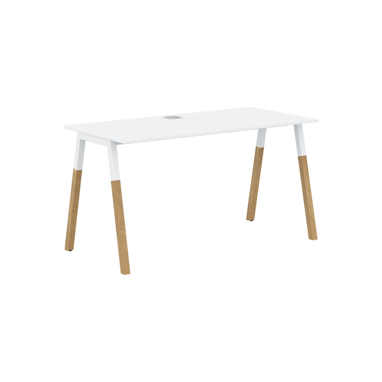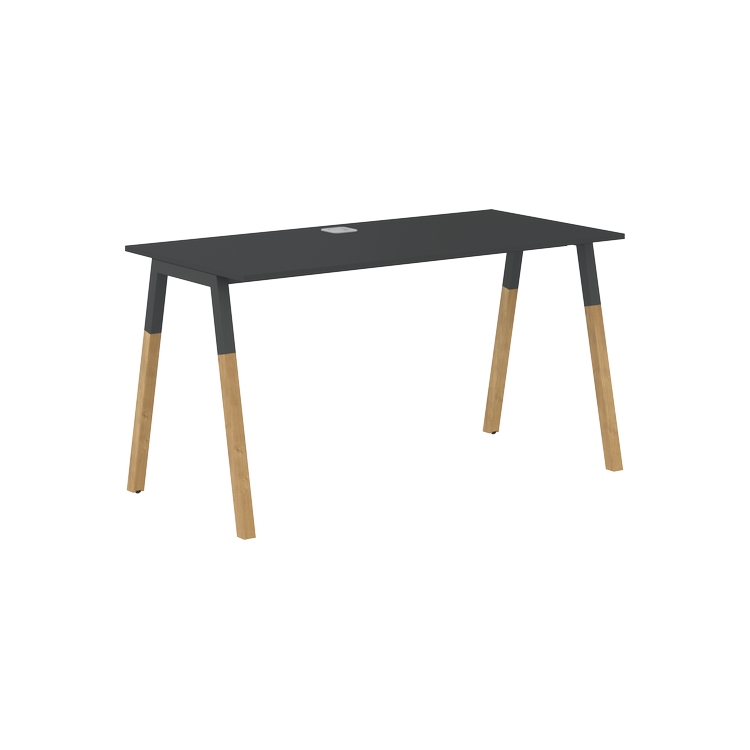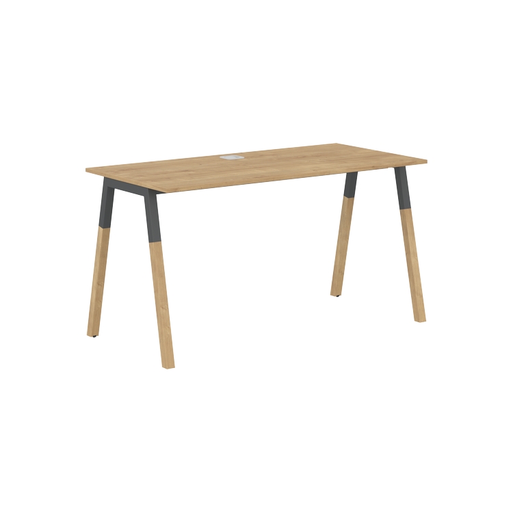 Столешница прямолинейная из ЛДСП т.18 мм. c кромкой ABS т.2 мм, комплектуется квадратной заглушкой кабель-канала по центру, 2-мя траверсами и комбинированными опорами А-образной формы, верхняя часть из профиля трубы 40х40 мм и нижняя часть из массива бука; отделка – масло-воск.