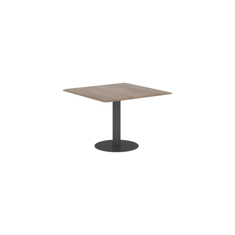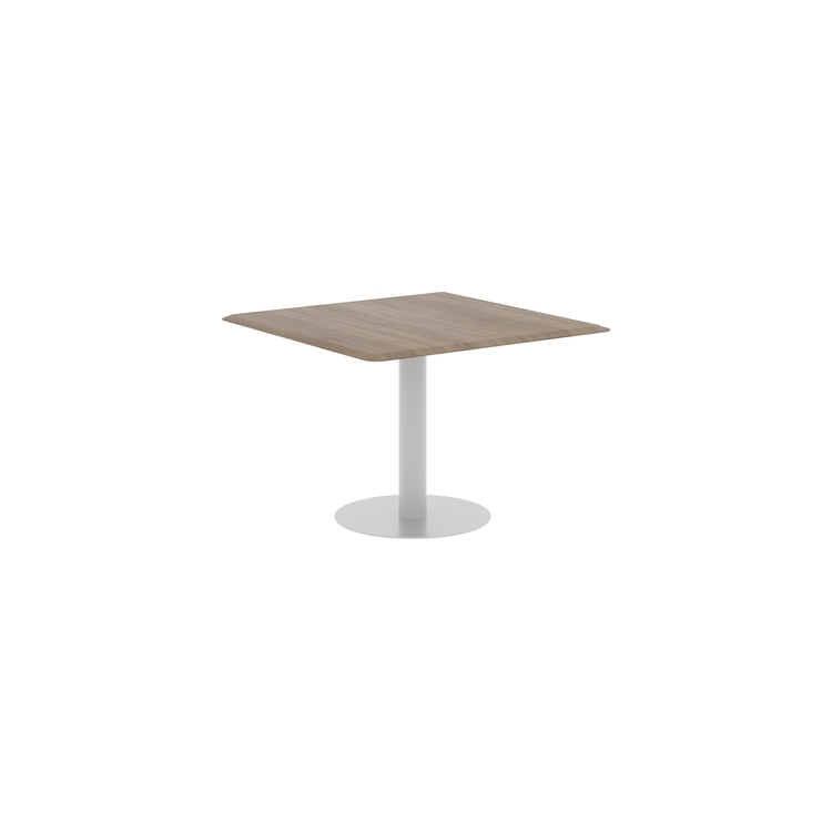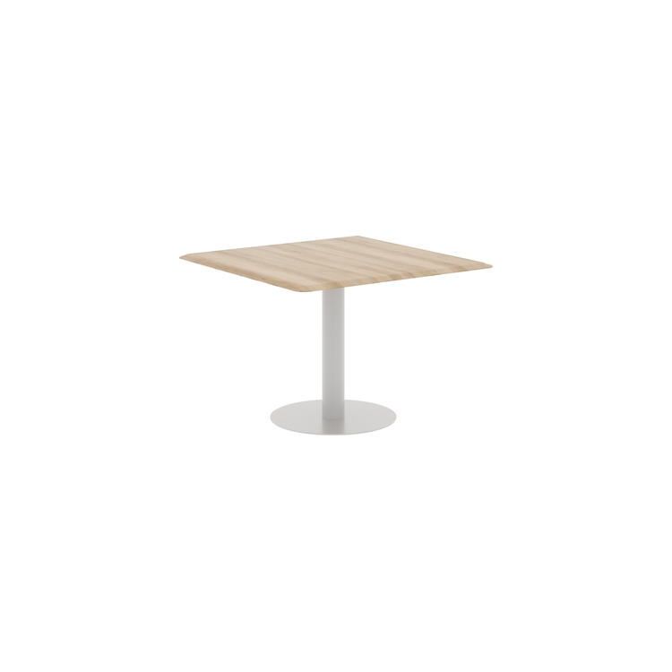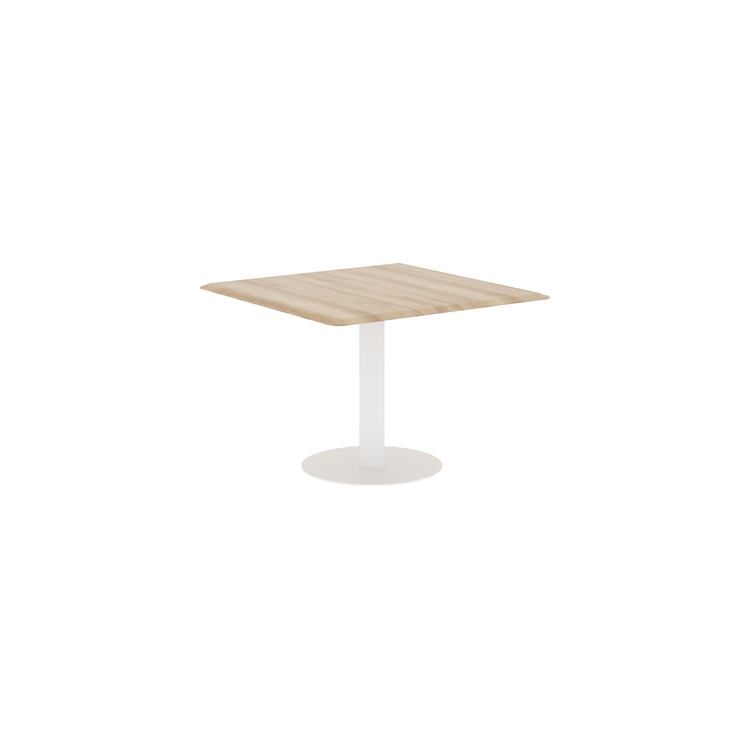 Столешница выполнена из МДФ т.19мм с фрезеровкой, покрытие - пленка ПВХ. Опора металлическая с круглым основанием, диаметр трубы 108мм , диаметр основания 600мм. Опора нерегулируемая, цвет - Белый, Антрацит, Алюминий