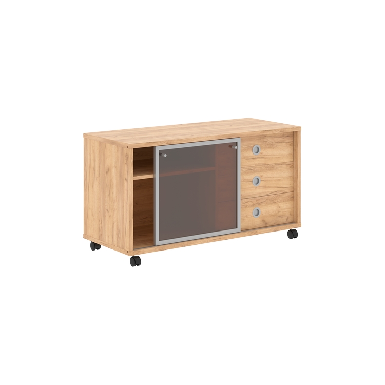 Тумба мобильная комплектуется стеклянной слайд-дверью в алюминиевой рамке, стекло тонированное пленкой, бронза.