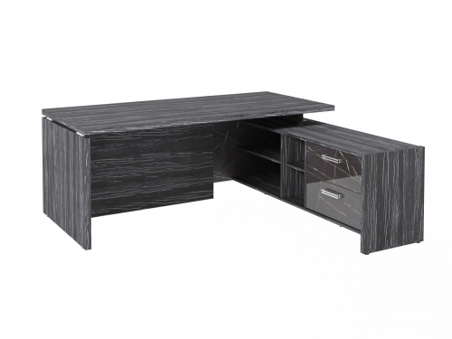 Щит на лицевой части стола - лакированная плита МДФ (ЛМДФ), с высокоглянцевой поверхностью. Толщина - 18 мм. Цвет - "Камень Пьетра Гриджиа черный". Кромка - 1 мм.