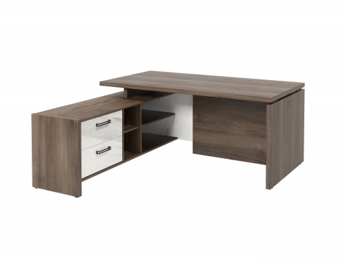 Стол с опорной тумбой FB-117L.GG (L) Орех Пацифик Табак/Мрамор Леванто белый
