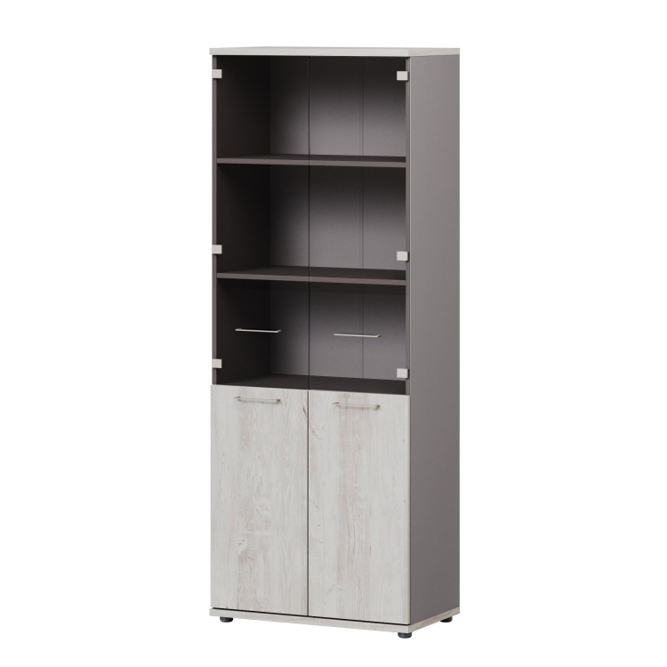 Шкаф на основе стеллажа B-67 + B-010 Двери низкие 794х18х798 + B-022 Двери средние стеклянные 794х4х1214.