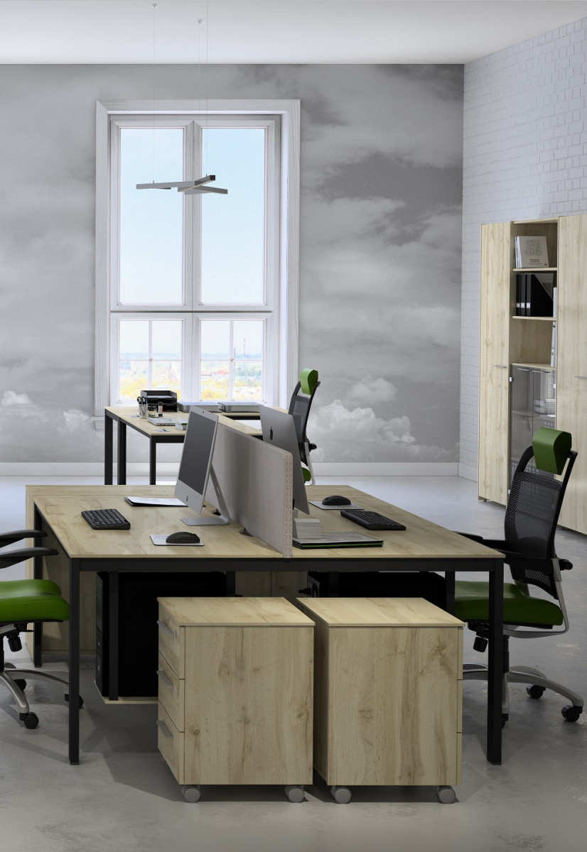 • Рабочие места: столы, тумбы, эргономичные кресла, системы хранения